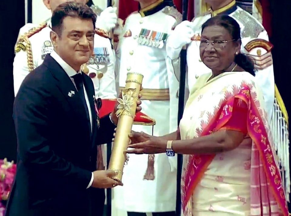 நடிகர், சர்வதேச கார் பந்தய வீரர் அஜித் குமார், நடிகை- பரதநாட்டிய கலைஞர் ஷோபனா சந்திரகுமார், தொழிலதிபர் நல்லி குப்புசாமி ஆகியோருக்கு மத்திய அரசு பத்மபூஷன் விருது அறிவித்தது. அதற்கானவிழா டெல்லி குடியரசுத் தலைவர் மாளிகையில் நடைபெற்றது. விழாவுக்கு குடியரசுத் தலைவர் திரௌபதி முர்மு தலைமை தாங்கி நடிகர் அஜித் குமாருக்கு பத்ம பூஷன் விருது வழங்கி கௌரவித்தார். அஜீத்குமார் பதமாபஷன்விருதுபெற்றது ரசிகர்களை மகிழ்ச்சியில் ஆழ்த்தி உள்ளது.