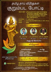 போட்டியாளரகள் tamizhthaivirudhu.in என்ற இணையதளத்தில் பதிவு செய்யலாம். அனுமதி இலவசம்.