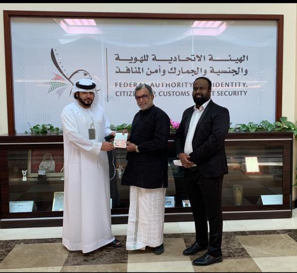 Attached are the photos of actor Nasser getting Golden Visa with Wasim Adan, an Indian businessman living in Dubai, who made arrangements for actor Nasser to get this visa.