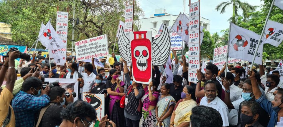 தமிழ்நாடு முழுவதும், மாவட்ட தலைநகர்களில் பெட்ரோல், டீசல் மற்றும் எரிவாயு விலையை குறைக்க வலியுறுத்தி, மத்திய, மாநில அரசை கண்டித்து மக்கள் நீதி மய்யம் கட்சியின் மாபெரும் கண்டன ஆர்ப்பாட்டம் – “ஏணிப் போராட்டம்” இன்று (10.07.2021) நடத்தப்பட்டது.