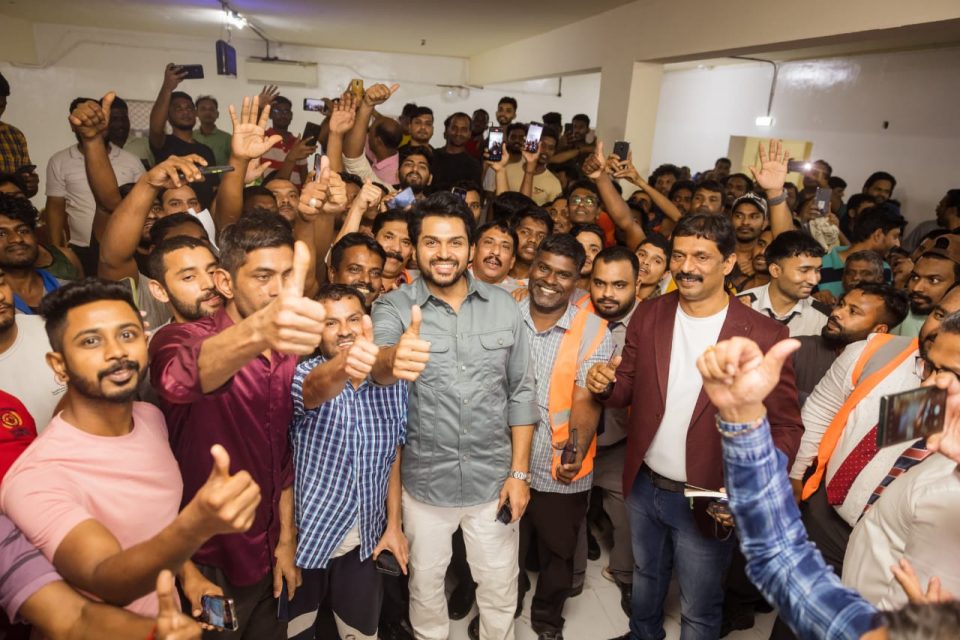 *துபாயில் உள்ள தொழிலாளர் முகாமை பார்வையிட்ட முதல் நடிகர் கார்த்தி: தொழிலாளர்  களுடன் சேர்ந்து தீபாவளி கொண்டாட்டம்*