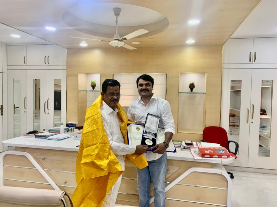 தயாரிப்பாளர் மற்றும் விநியோகஸ்தர் கோபுரம் பிலிம்ஸ் அன்புச்செழியன் அவர்கள் தயாரிப்பாளர் கலைப்புலி S தாணு அவர்களை அசுரன் படத்திற்காக தேசிய விருது பெற்றதற்காக மரியாதை நிமிர்த்தமாக நேரில் சந்தித்து வாழ்த்து தெரிவித்தார் 💐