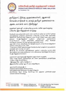 அரசியல் சினிமா செய்திகள் தமிழ் செய்திகள்முதல்வர் மு.க.ஸ்டாலினுக்கு மலேசிய தமிழ்சங்கம் பாராட்டு by Jai ChandranOctober 7, 2021October 7, 2021523 Total1 வெளிநாடு வாழ் தமிழர்களின் நலம் காக்க ‘புலம்பெயர் தமிழர் நல வாரியம்’ அமைத்திருக்கும், தமிழக முதலமைச்சர் மு.க.ஸ்டாலினுக்கு மலேசியத் தமிழ் எழுத்தாளர் சங்கம் தலைவர் பெ.இராஜேந்திரன் வாழ்த்து தெரிவித்தார். அந்த அறிக்கை வருமாறு: Total1