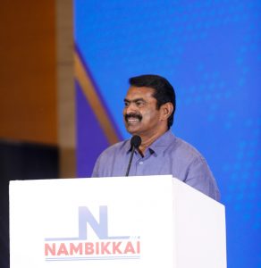 நிகழ்வில் கலந்து கொண்ட நாம் தமிழர் கட்சியின் தலைமை ஒருங்கிணைப்பாளர் சீமான் பேசியதாவது, “கட்சி சார்புடைய அல்லது தலைவர்கள் கையில் இருக்கும் இன்றைய ஊடகங்களுக்கு மத்தியில் பெரும் நம்பிக்கையாக என் போன்றவர்கள் இந்த ‘நம்பிக்கை’யை தான் பார்க்கிறோம். நம்பிக்கை என்பது வெறும் வார்த்தை மட்டுமல்ல! சிங்கப்பூர், மலேசியா போன்ற நாடுகளில் ’நம்பிக்கை’ கிளை பரப்புகிறது என்றார்கள். அது ஆழமான வேர் பரப்ப வேண்டும் என்பதுதான் என் விருப்பம். தேர்தல் வருகிற காலக்கட்டத்தில் நேர்மையும் உண்மையுமாக செய்திகளை ‘நம்பிக்கை’ கொண்டு போய் சேர்க்கும் என்பது என் நம்பிக்கை. உலகம் முழுவதும் உள்ள தமிழர்களின் நம்பிக்கையை இது நிச்சயம் பெறும் என உள்ளன்போடு வாழ்த்துகிறேன்” என்றார்.