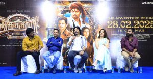 பாடலாசிரியர் – நடிகர் – இயக்குநர் பா. விஜய் இயக்கத்தில் உருவாகியுள்ள ‘அகத்தியா’ திரைப்படத்தில் ஜீவா, அர்ஜுன், ராஷி கண்ணா, ராதாரவி, யோகி பாபு, ரெடின் கிங்ஸ்லி, எட்வர்ட், மெடில்டா உள்ளிட்ட பலர் நடித்திருக்கிறார்கள். தீபக் குமார் பதி ஒளிப்பதிவு செய்திருக்கும் இந்த திரைப்படத்திற்கு யுவன் சங்கர் ராஜா இசையமைத்திருக்கிறார். படத்தொகுப்பு பணிகளை ஷான் லோகேஷ் கவனிக்க, கலை இயக்கத்தை சண்முகம் மேற்கொண்டிருக்கிறார். ஃபேண்டஸி ஹாரர் திரில்லர் ஜானரில் கமர்ஷியல் என்டர்டெய்னராக தயாராகி இருக்கும் ‘அகத்தியா’ திரைப்படம் பிப்ரவரி 28ம் தேதி முதல் தமிழ், தெலுங்கு, இந்தி ஆகிய இந்திய மொழிகளில் 800க்கும் மேற்பட்ட திரையரங்குகளில் வெளியாகிறது. சென்னையில் நடைபெற்ற பத்திரிகையாளர் சந்திப்பில் தயாரிப்பாளர் ஐசரி கே கணேஷ், இயக்குநர் பா.விஜய், நடிகர் ஜீவா, நடிகை ராஷி கண்ணா, ஒளிப்பதிவாளர் தீபக் குமார் பதி ஆகியோர் கலந்து கொண்டனர்.