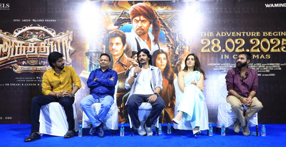 வேல்ஸ் பிலவல்ஸ் ஃபிலிம் இன்டர்நேஷனல் சார்பில் டாக்டர் ஐசரி கே கணேஷ் மற்றும் வேம் இந்தியா சார்பில் அனீஷ் அர்ஜுன் தேவ் இணைந்து தயாரித்து, ஜீவா, அர்ஜுன், ராஷி கண்ணா நடிப்பில் பா. விஜய் இயக்கத்தில் உருவாகி, வரும் 28ம் தேதி வெளியாகும் ‘அகத்தியா’ படத்தின் மீடியா,  பத்திரிகையாளர் சந்திப்பு சென்னையில் நடைபெற்றது.