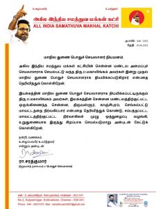 அரசியல் சினிமா செய்திகள் தமிழ் செய்திகள்ச ம க மாவட்ட துணை பொதுச் செயலாளரை நியமித்த சரத்குமார் by Jai ChandranJune 10, 2022387 Total1 அகில இந்திய சமத்துவ மக்கள் கட்சியின் மாவட்ட துணை பொதுச் செயலாளரை நியமித்து அறிவித்தார் அக்கட்சி த்லைவர் சரத்குமார். Total1