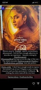 அதிலும் குறிப்பாக ‘பாகுபலி’ புகழ் நடிகர் ராணா டகுபதி தன்னுடைய சமூக வலைதளப் பக்கத்தில், ” சுழல் தி வோர்டெக்ஸ்= குழுவினருக்கு என்னுடைய அன்பான வாழ்த்துக்கள். நீண்ட நாட்களுக்குப் பிறகு என்னுடைய அன்பான தோழி ஸ்ரேயா ரெட்டி அவர்களை திரையில் பார்க்கிறேன். அவருக்கும், சுழல் தி வோர்டெக்ஸ் தொடரை உருவாக்கிய புஷ்கர் & காயத்ரி மற்றும் அமேசான் பிரைம் வீடியோவுக்கு என்னுடைய வாழ்த்துக்களை தெரிவித்துக் கொள்கிறேன்.” என பதிவிட்டிருக்கிறார்.