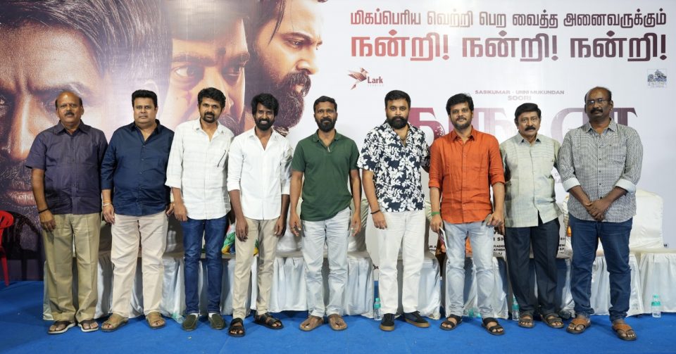 நடிகர் சசிகுமார் பேசுகையில், ” தயாரிப்பாளர் குமார் முதலில் சக்சஸ் மீட் என்று சொன்னார். உடனே அவரிடம் சக்சஸ் மீட் என்று வேண்டாம். தேங்க்ஸ் கிவிங் மீட் என்று சொல்லுங்கள். அதனால் தற்போது நன்றி என்று மாற்றிவிட் டார்கள். இது எனக்கு மகிழ்ச்சியை தருகிறது. ஏனெனில் தற்போதெல் லாம் ஓடாத திரைப்படங்களுக்கு தான் சக்சஸ் மீட் வைக்கிறார்கள் என்று ஒரு பேச்சு இருக்கிறது.
