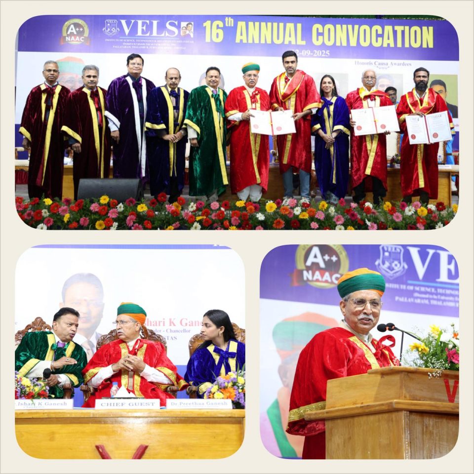 *A Proud Moment for Vels University (VISTAS) at the 16th Annual Convocation! Held on 12th September 2025 at our Pallavaram campus, the Convocation was graced by Shri Arjun Ram Meghwal Ji, Hon’ble Minister of State (I/C) for Law and Justice & Minister of State for Parliamentary Affairs, Govt. of India, as the Chief Guest. His inspiring address highlighted the transformative power of education and commended VISTAS for its unwavering commitment to shaping future leaders.*
